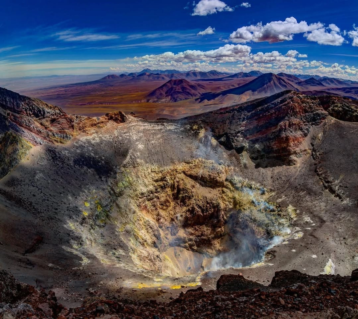 Caminata guiada hasta los miradores del cráter con vistas al altiplano y las fumarolas activas.