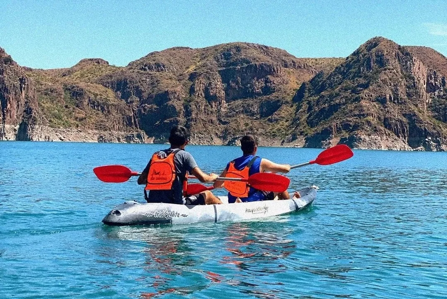 Tu aventura comienza en el parador Kalinaw Aventuras, a orillas del Dique los Reyunos. Al llegar, serás recibido por el equipo, quienes te darán las instrucciones de seguridad y el equipo necesario. Este es el momento de tomar tu primera decisión del día: elegirás la agilidad de un kayak, la estabilidad de una canoa para compartir o la diversión relajada de un hidropedal para tu travesía.