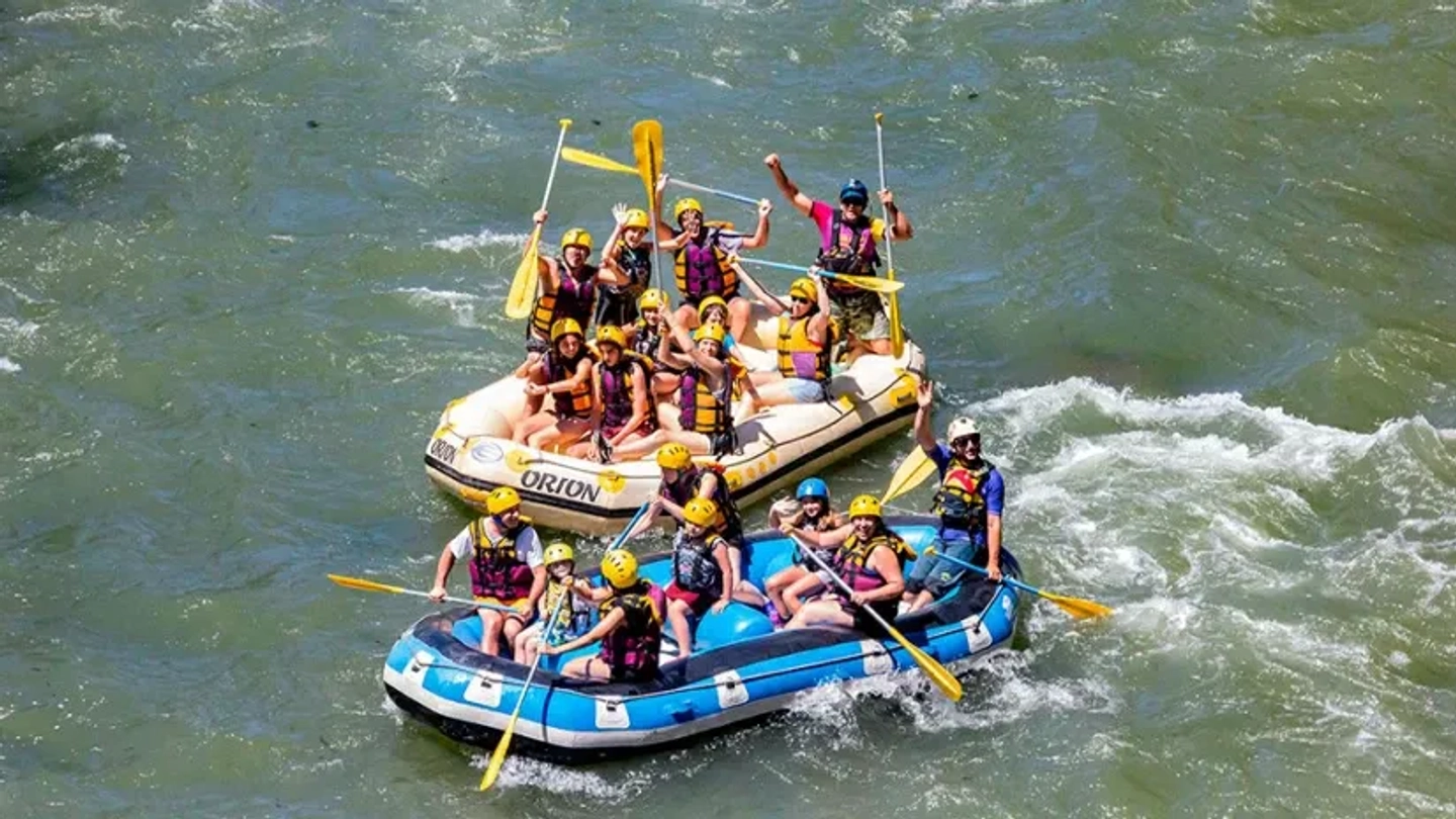 La experiencia comienza con la preparación para el descenso en balsa de goma por el emblemático río Atuel en San Rafael. Ideal para familias y amigos, esta primera etapa se enfoca en la adaptación al equipo y al entorno acuático, garantizando una actividad segura y accesible para todos los participantes a partir de los 4 años de edad.