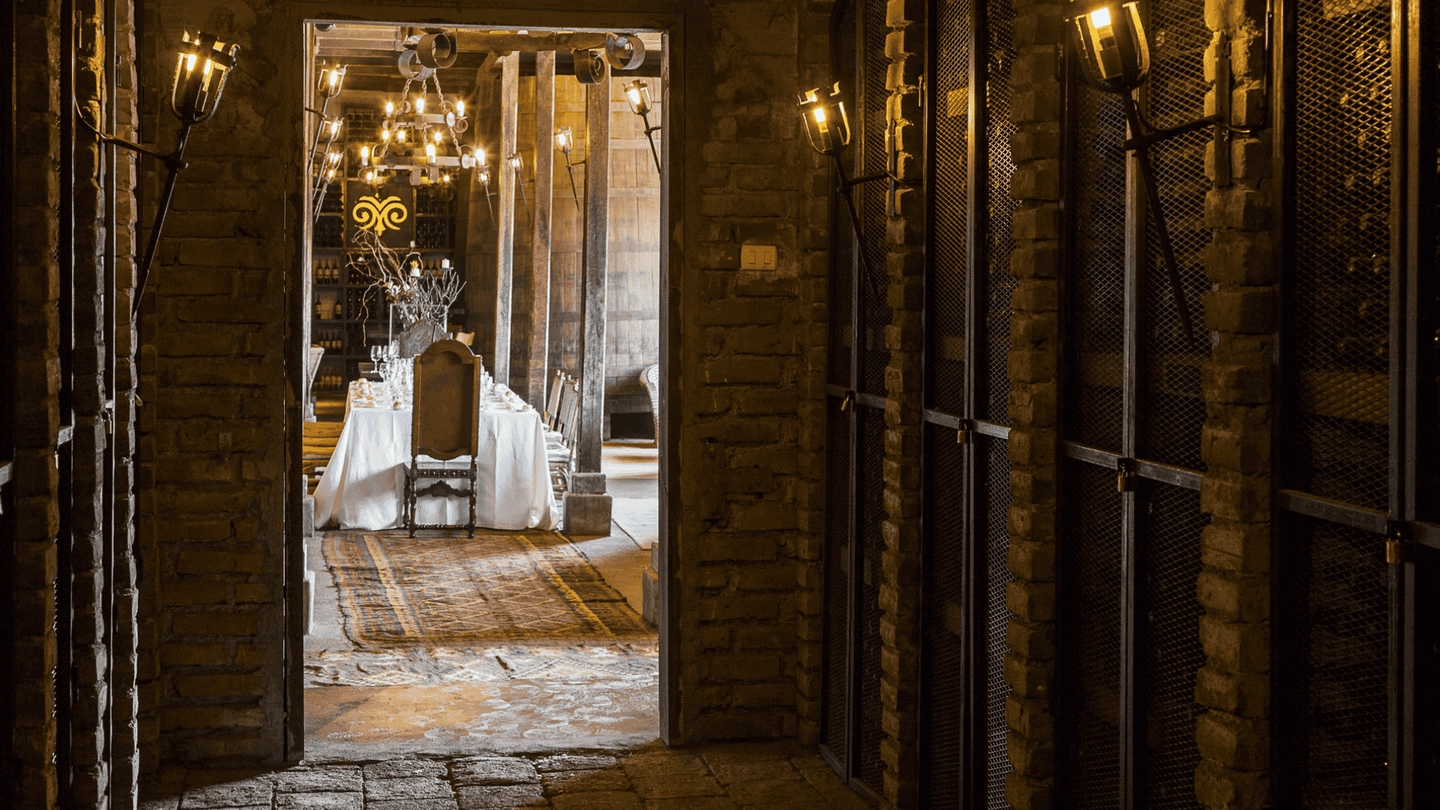 Degustación guiada de cinco vinos premium en cava subterránea.