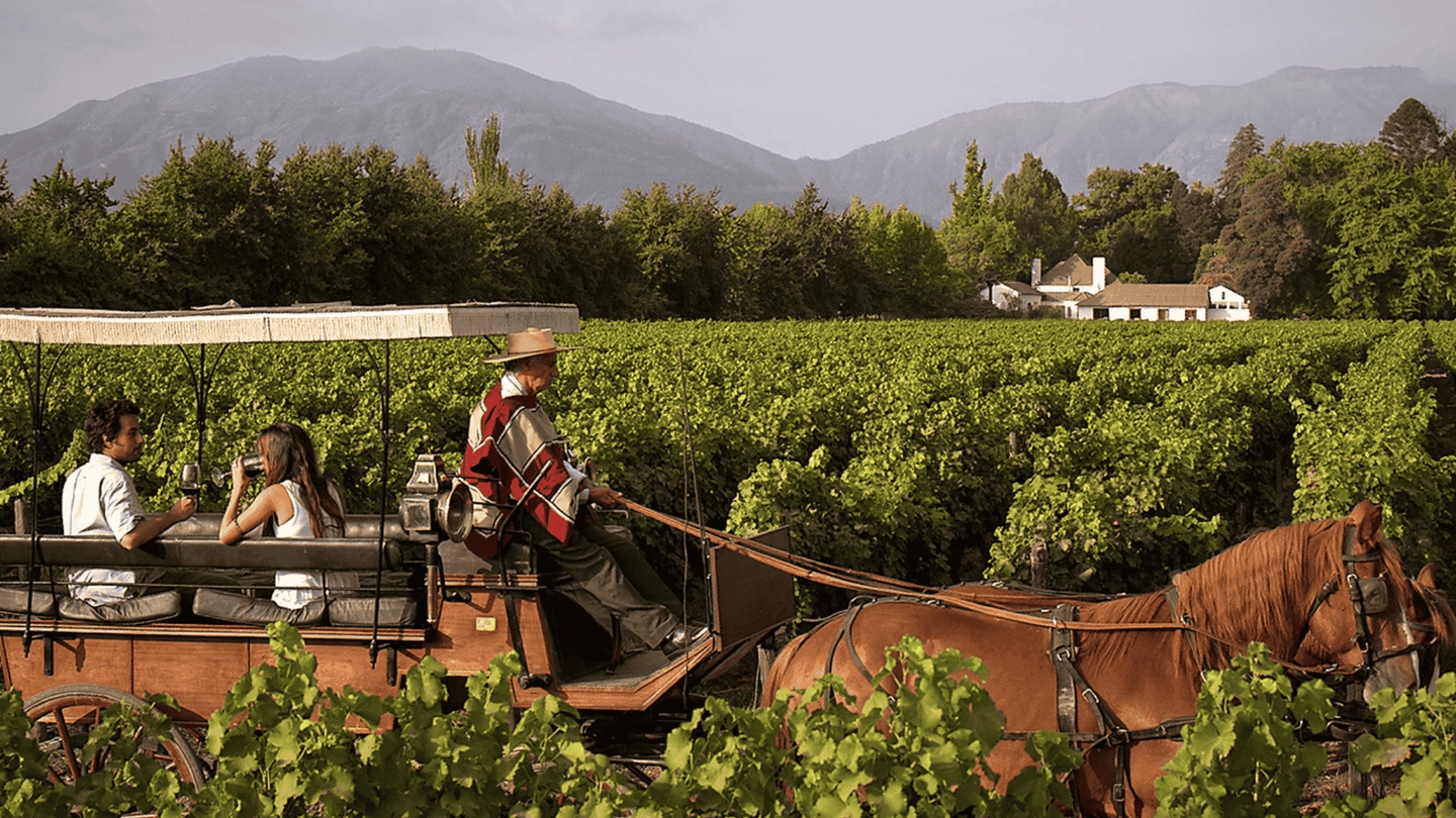Trayecto en carruaje por los cuarteles históricos de malbec con vista al paisaje vitivinícola.