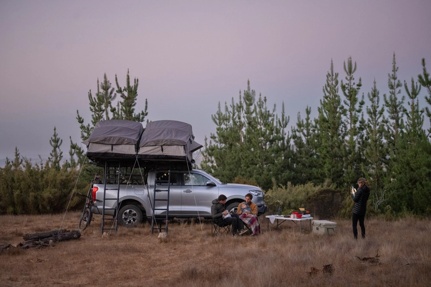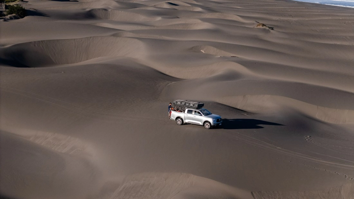 Incluye camioneta 4x4 con carpa de techo y kit de camping.