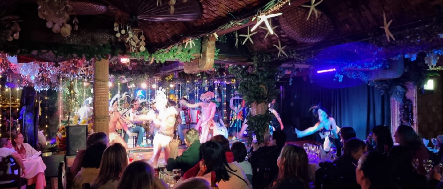 Cena show en restaurante Bali Hai para disfrutar de una velada mágica con danzas típicas de la Polinesia y el folclore chileno. Degusta una cena internacional de tres tiempos en un ambiente temático único en Santiago. Incluye traslados ida y vuelta para tu total comodidad y seguridad.