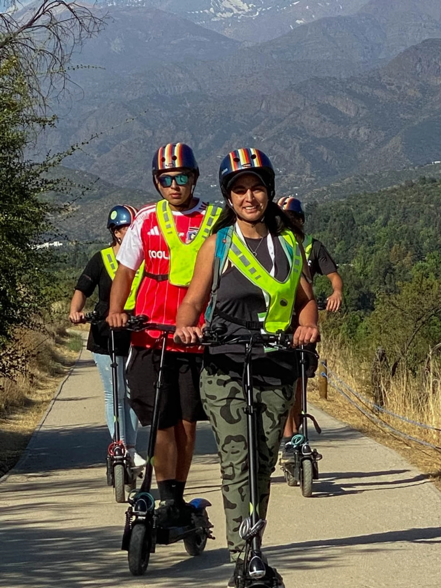 - Equipamiento: scooter eléctrico, casco, chaleco reflectante.