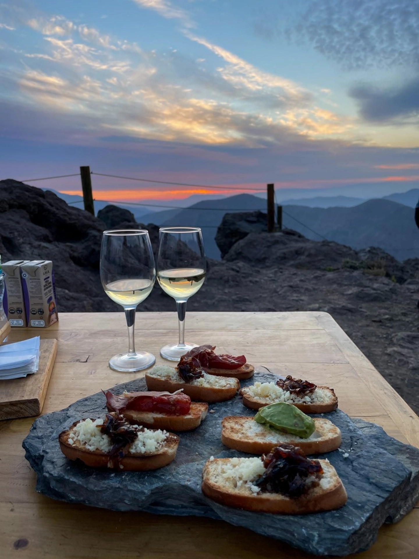 Caminata por el pueblo de montaña y picnic con aperitivos mientras se observa la puesta de sol.