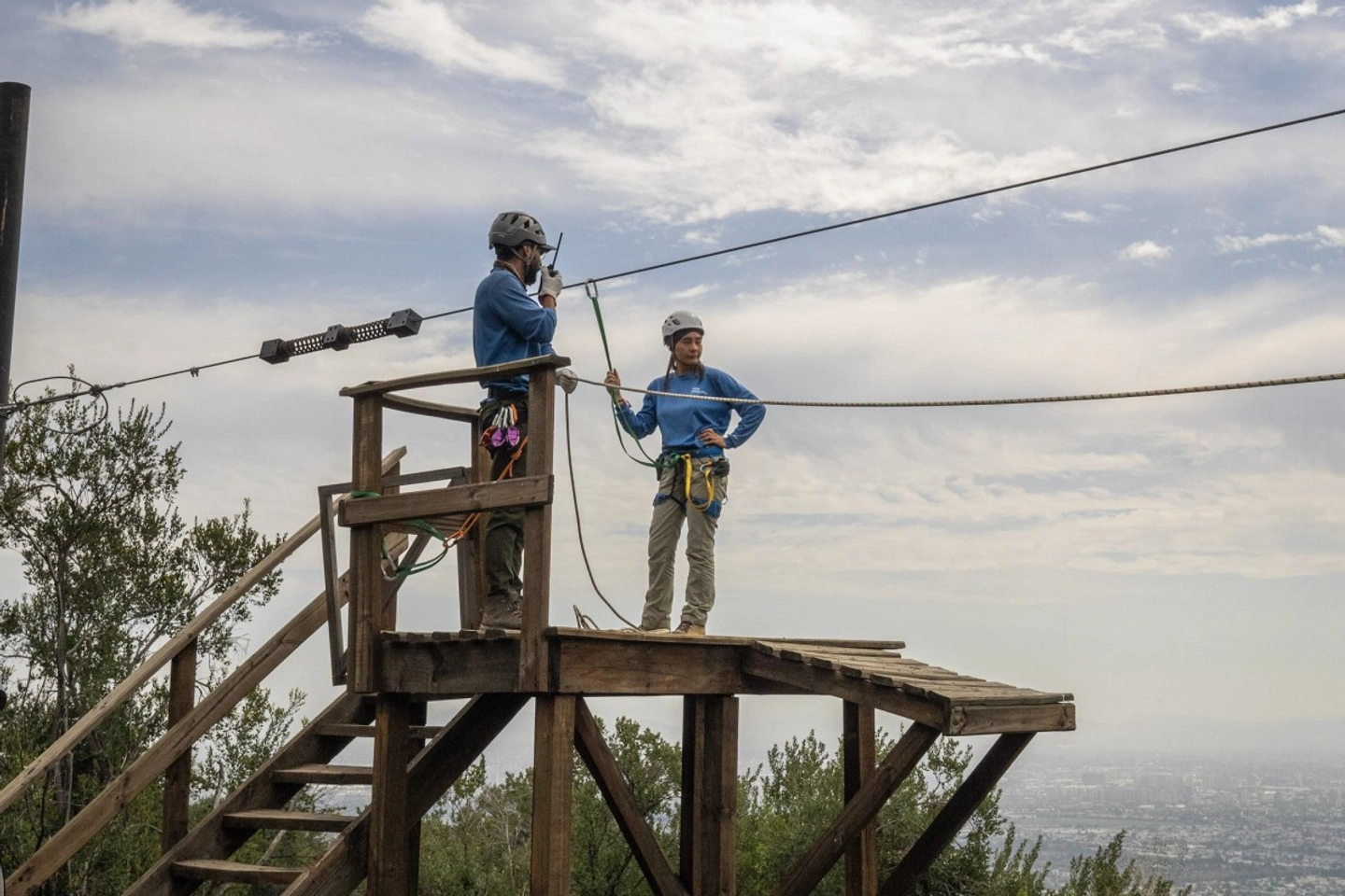 Disfruta la emoción de dos lanzamientos en tirolesa de 206 metros en el Parque Cantalao, con vistas únicas de Santiago y el contrafuerte cordillerano.