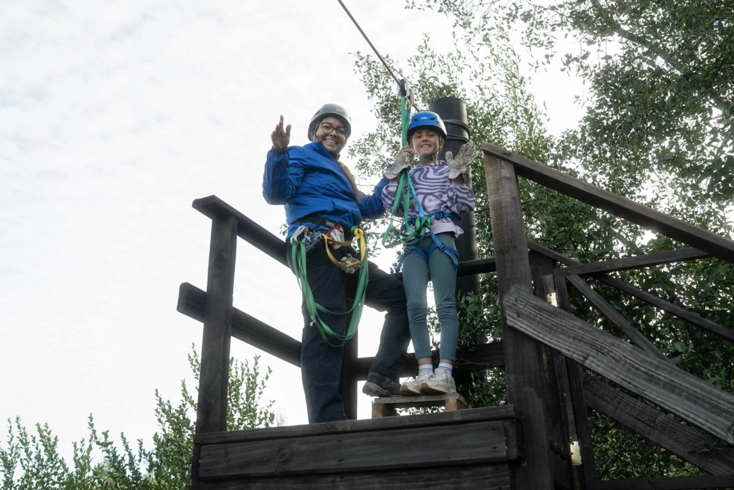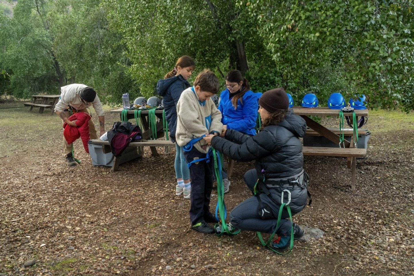 - Equipo técnico para la actividad (casco, arnés, líneas, polea y guantes)