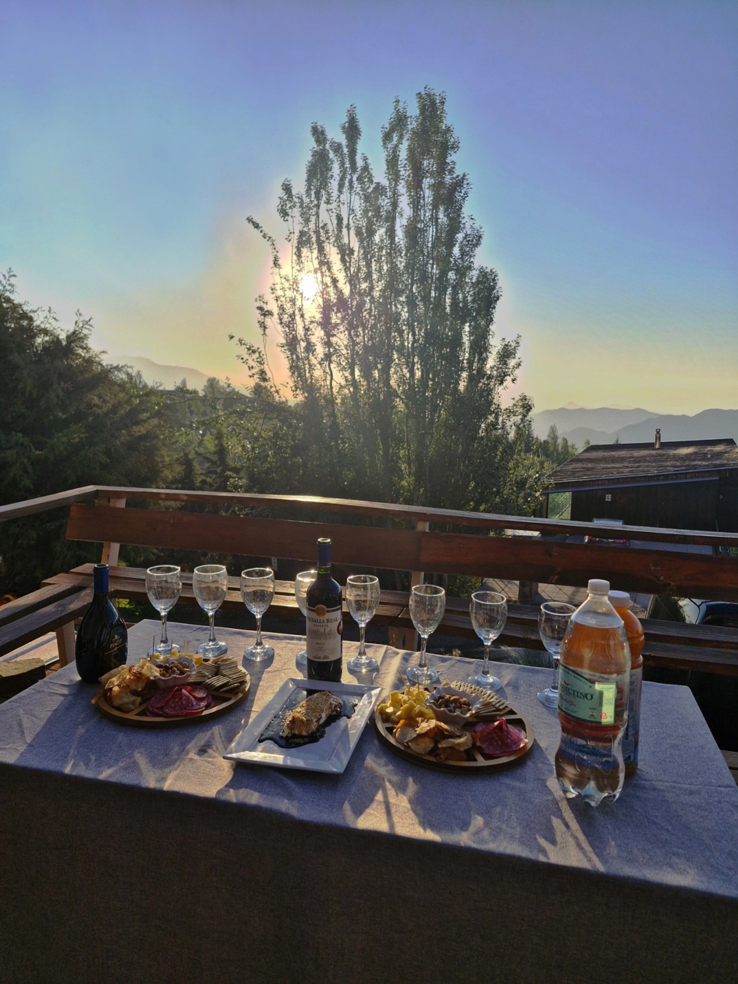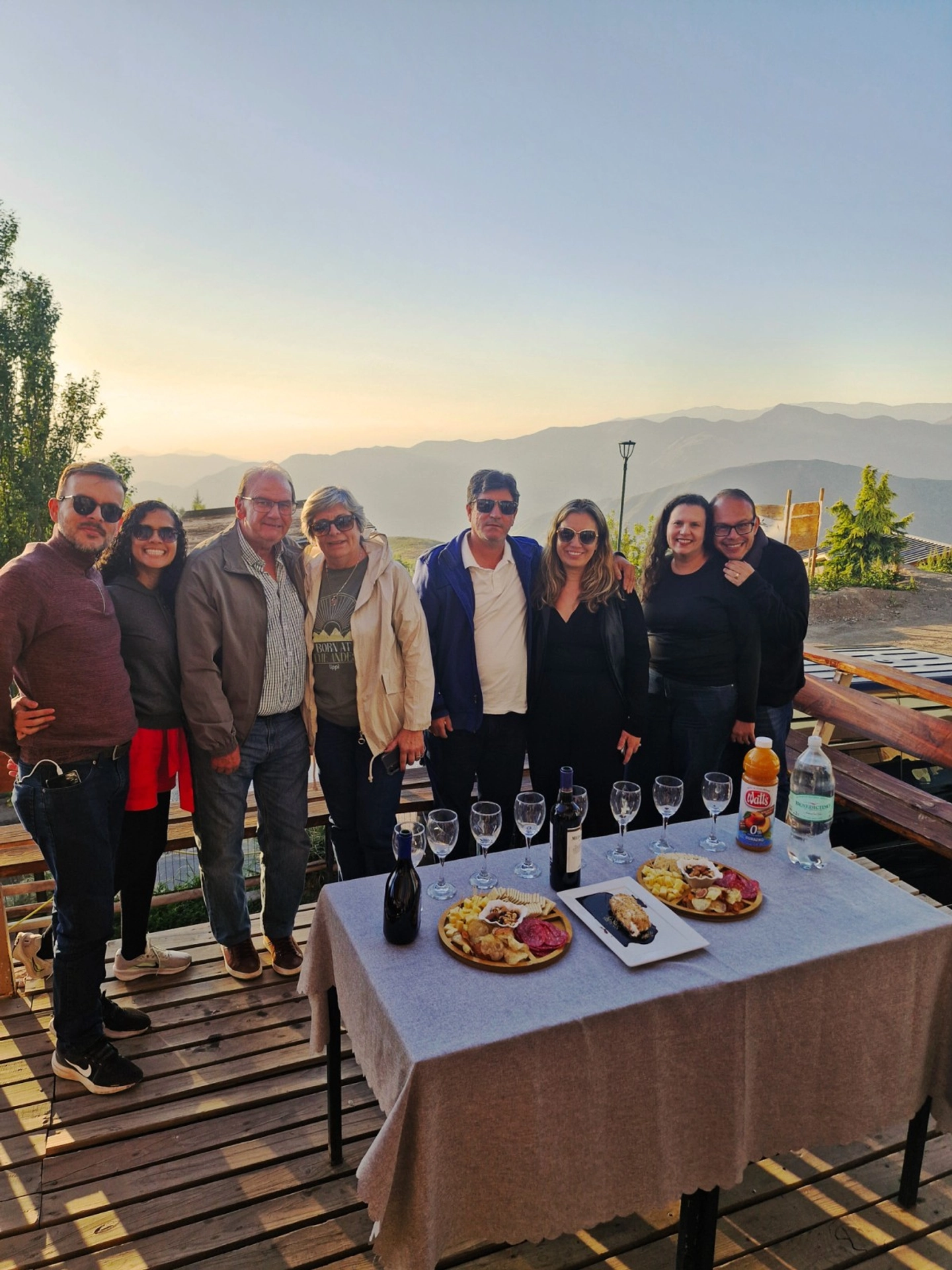 Tiempo para contemplar el atardecer, tomar fotografías y disfrutar un snack y bebestible mientras cambia la luz sobre la cordillera.