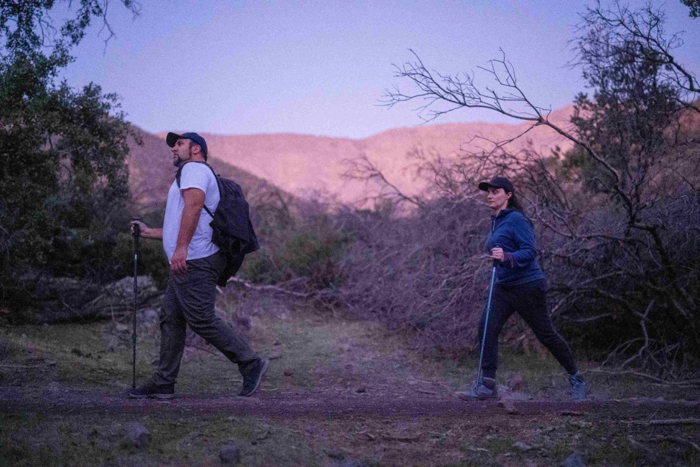 Trekking nocturno guiado por el Parque San Carlos de Apoquindo. Una caminata grupal para descubrir la magia del entorno natural bajo las estrellas, ideal para reconectar con la naturaleza en un ambiente seguro y accesible.