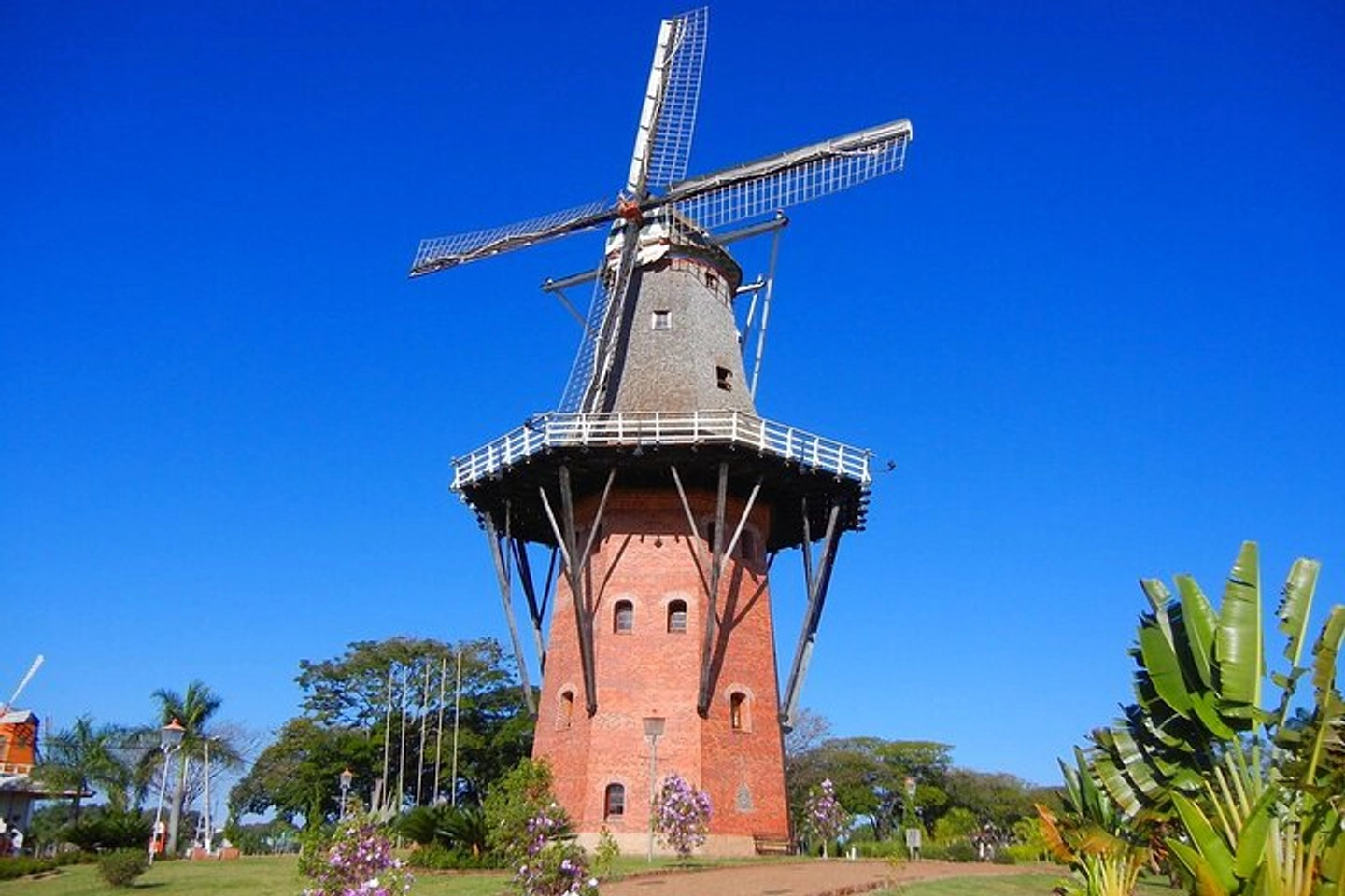 Recorrido por puntos destacados como Puerta de la Ciudad, Mercado de las Flores, Molino Povos Unidos, Palacio Municipal, Iglesia Matriz, Terraza del Amor y Lago Victoria Regia, con explicaciones del guía.