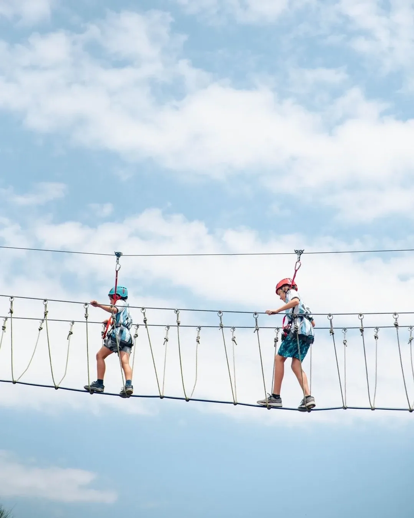 El día de aventura comienza en el Valle del Picapedrero, donde niños de 4 a 10 años se preparan para desafiar las alturas. La primera parte del circuito los llevará a cruzar un emocionante puente tibetano, poniendo a prueba su equilibrio y coraje. Inmediatamente después, la diversión continúa con el descenso por tres tirolesas que atraviesan el paisaje de las antiguas canteras de piedra, garantizando una dosis de adrenalina en un ambiente seguro y natural.