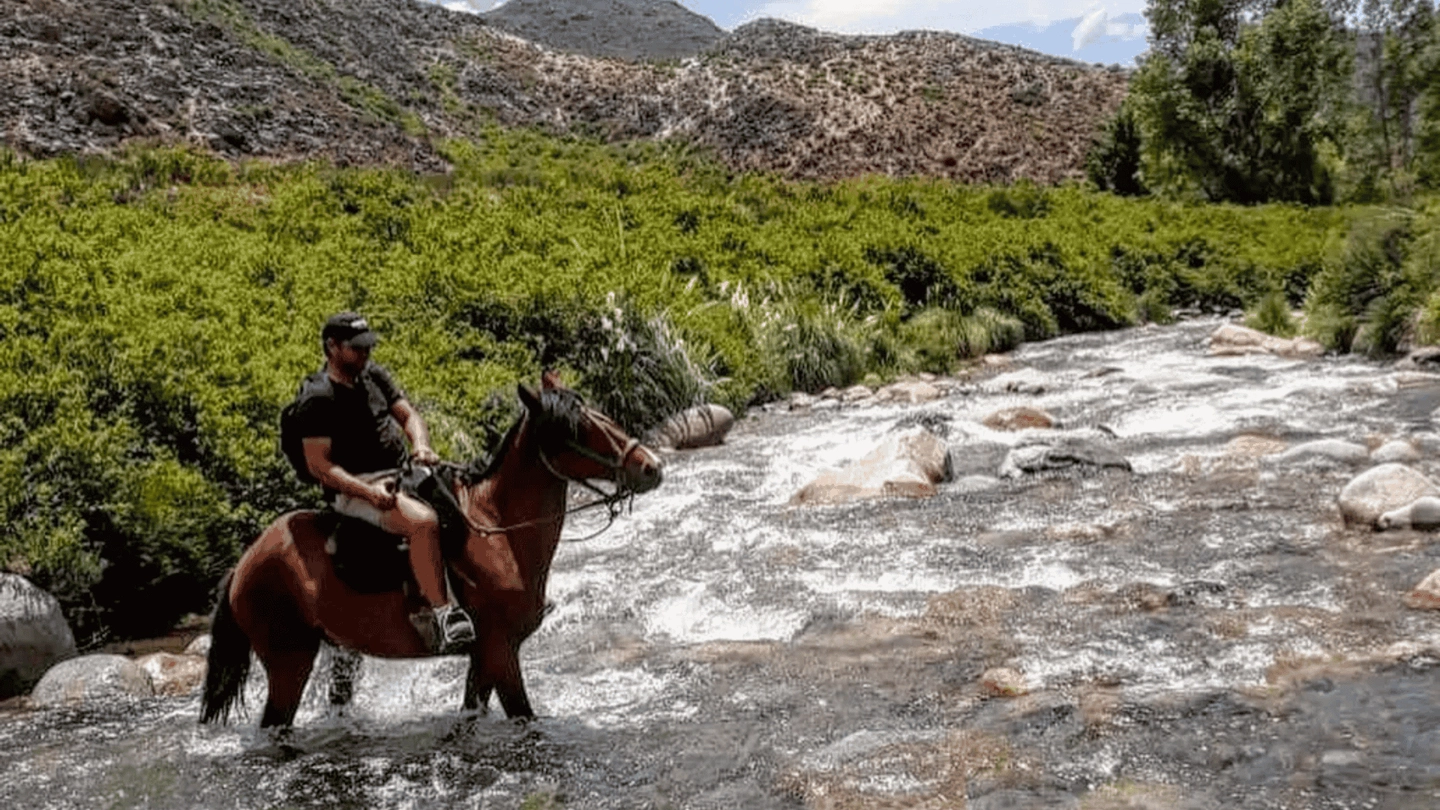 La aventura comienza en la base de la precordillera, donde conocerás a los caballos criollos y al baqueano experto que guía la travesía. Luego inicia el ascenso por senderos que serpentean entre paisajes de montaña, cruzando arroyos de agua pura y disfrutando de vistas panorámicas de los picos nevados. Durante el recorrido se realiza una parada en un mirador natural para disfrutar de un almuerzo campestre antes de emprender el regreso.
