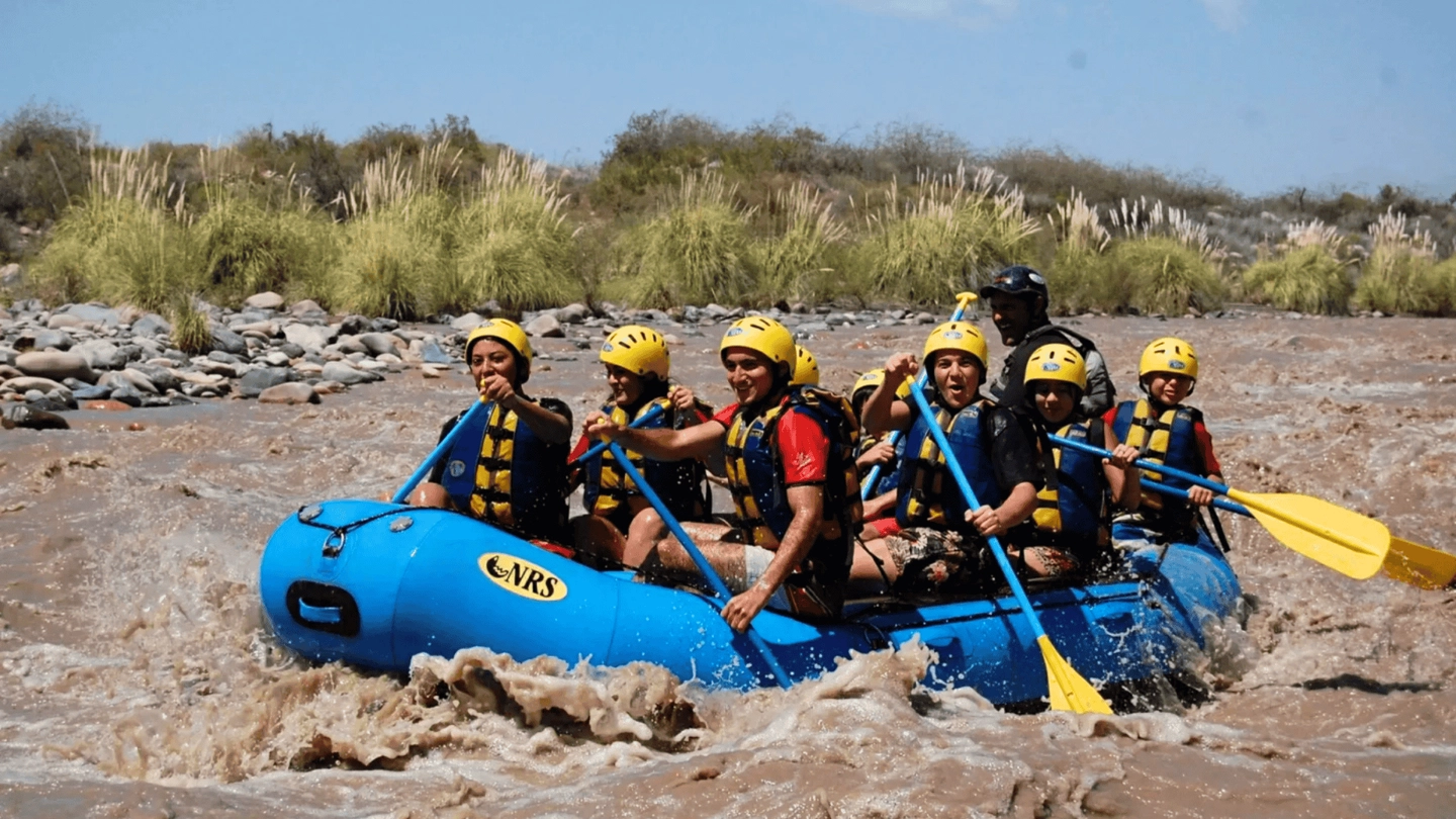 Disfruta una actividad de rafting en el Río Tunuyán, en el Valle de Uco, con un descenso de 8 km por aguas dinámicas y técnicas. Navega junto a guías profesionales por rápidos que combinan adrenalina, naturaleza y desafíos propios de un río de montaña.