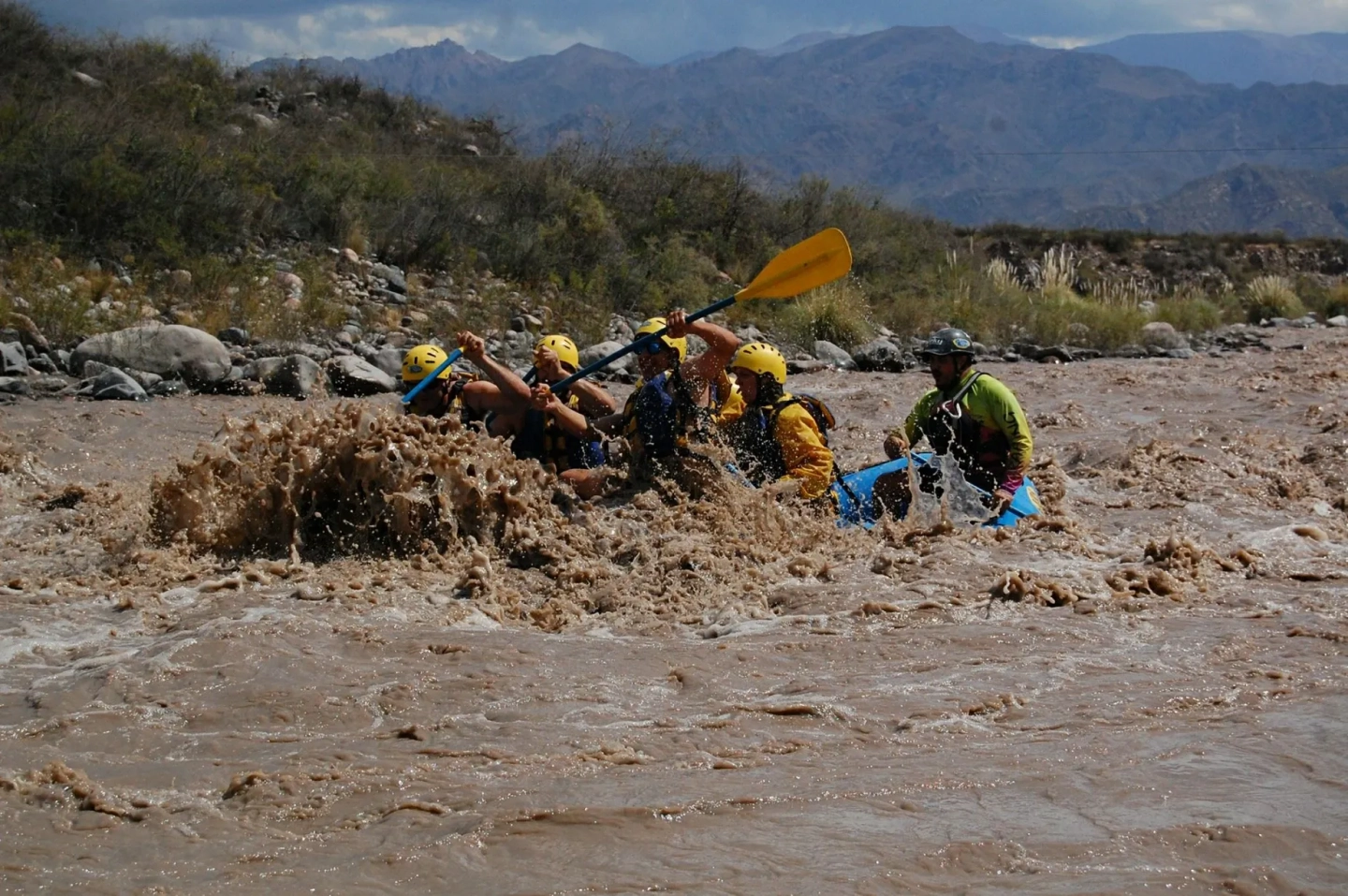 La jornada comienza en el punto de encuentro a orillas del Río Tunuyán. Recibirás una charla de seguridad completa por parte de guías expertos, quienes te proporcionarán el equipo necesario (casco, chaleco salvavidas y remo). Aprenderás las técnicas básicas de remado y cómo coordinar con tu familia para la aventura que está por comenzar, embarcando y sintiendo la primera corriente del río.