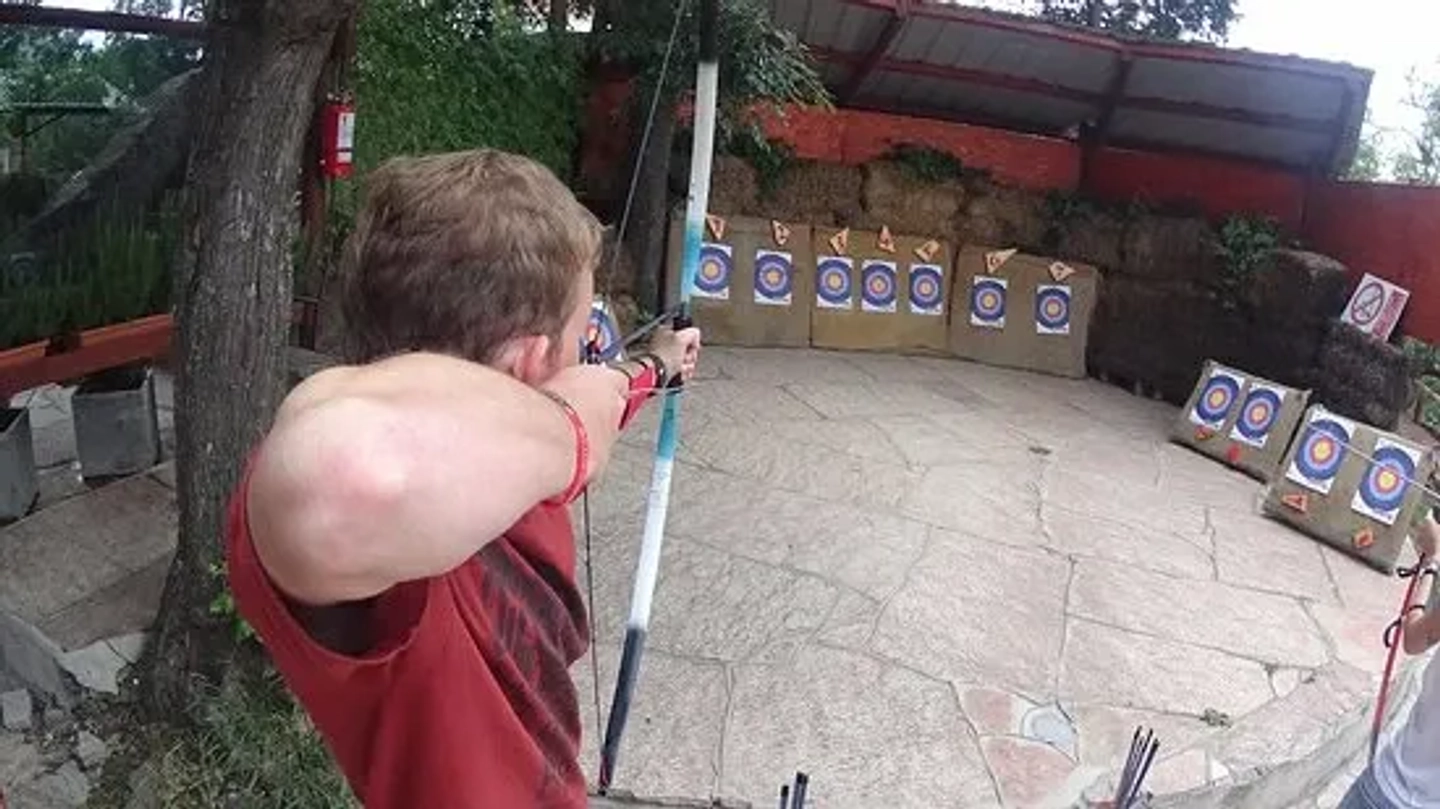 Una vez en la cima, la adrenalina se dispara. Te equiparás para deslizarte por un emocionante circuito de tirolesa, sintiendo la velocidad y la libertad de volar entre los árboles. Inmediatamente después, pondrás a prueba tu puntería y concentración en nuestra estación de tiro con arco, donde aprenderás las técnicas básicas para dar en el blanco. Esta combinación de velocidad y precisión completa tu experiencia de aventura en altura.