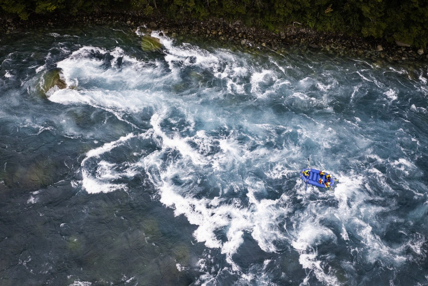 30 MinutosComienzas la navegación por el río más caudaloso de Chile en un tramo de 7 kilómetros. Durante aproximadamente una hora combinas rápidos clase III (nivel intermedio) con secciones más tranquilas que permiten disfrutar del color turquesa del agua y de la naturaleza exuberante de la Patagonia chilena. El equipo de guías mantiene el control de seguridad en todo momento, haciendo que la experiencia sea apta tanto para familias con niños como para grupos de amigos amantes de la aventura.