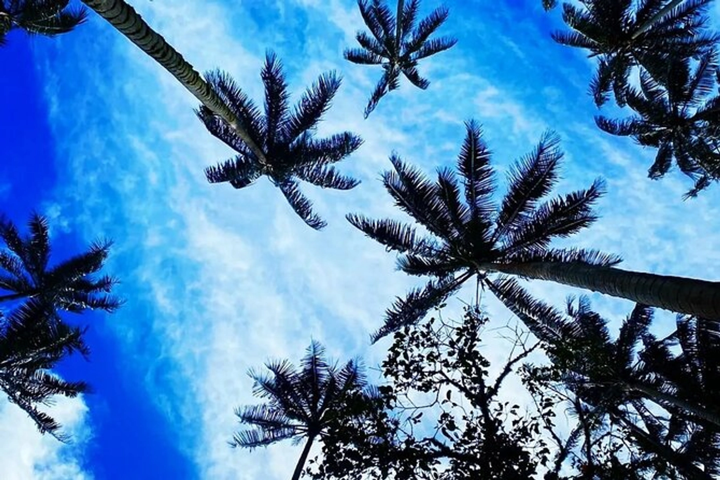 Pedaleo por caminos rurales de montaña en un entorno natural con vistas a las palmas de cera.