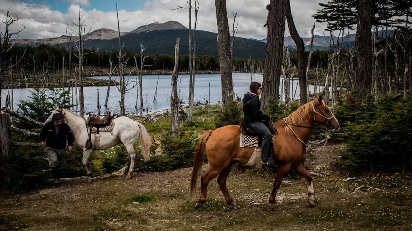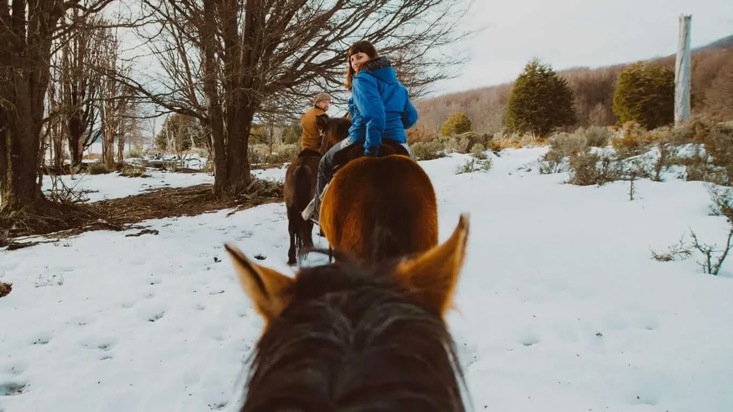 Una vez listos, iniciaremos la cabalgata guiada. Montarás a caballo para adentrarte en el imponente paisaje de la Cordillera de los Andes. Durante el recorrido, explorarás senderos únicos, rodeado por la belleza natural y la tranquilidad del entorno fueguino, viviendo una auténtica experiencia de conexión con la naturaleza y las tradiciones de los baqueanos de la región.