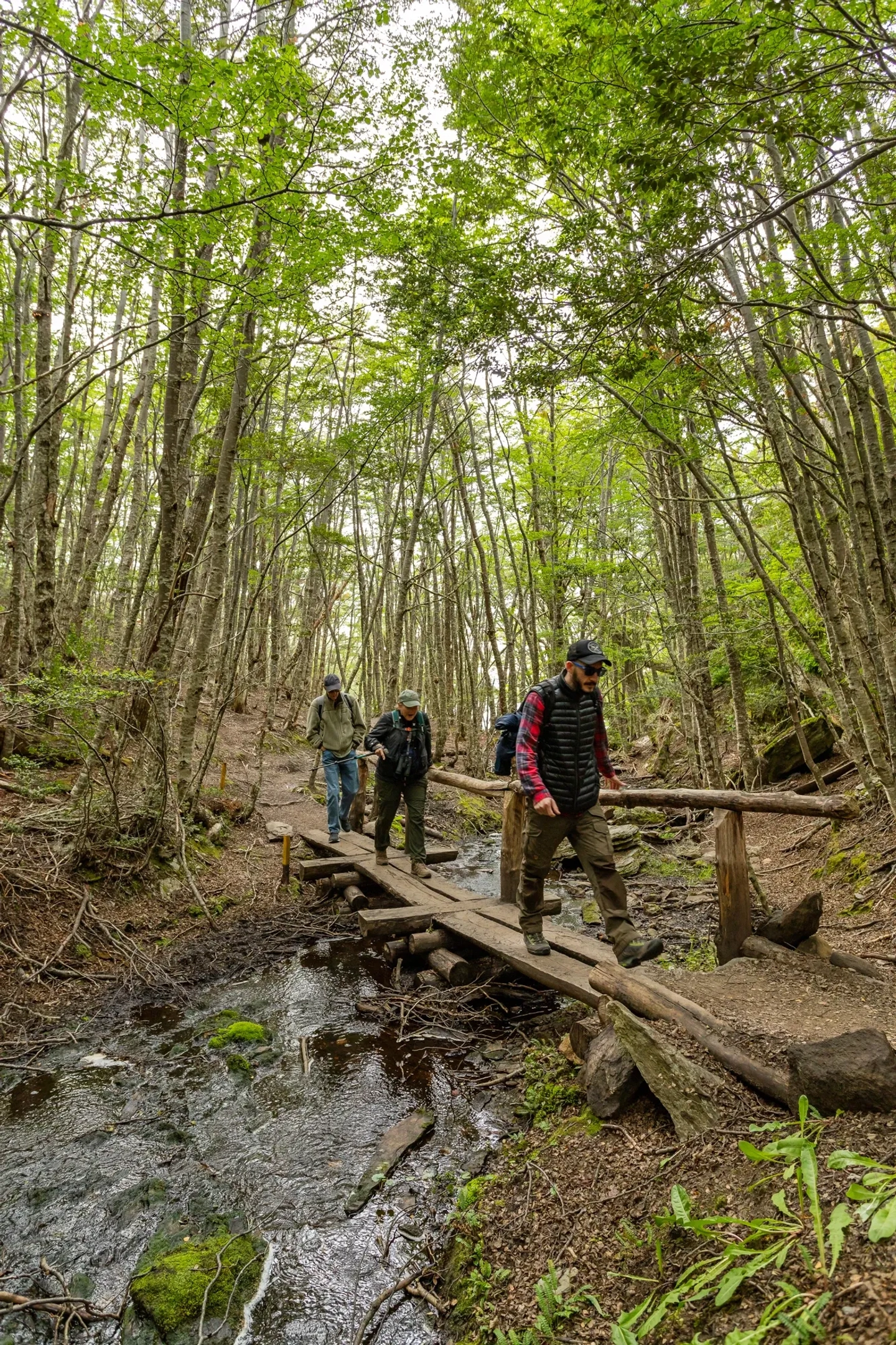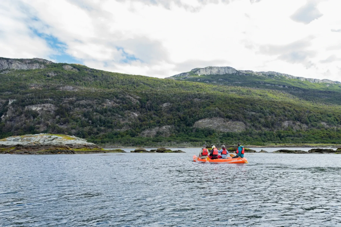 Lago Acigami. Charla técnica y preparación para subir a las canoas. *08:30 - Salida de Ushuaia hacia el Parque Nacional Desde su alojamiento, a unos 10 km de la ciudad de Ushuaia, al borde del Canal Beagle, nos esperan el bosque y las montañas del Parque Nacional Tierra del Fuego. *09:20 - Pago del ingreso al Parque Nacional (no incluido) Luego de pagar la entrada al Parque Nacional (AR $ 3 200 por persona), llegamos a Bahía Ensenada frente a la isla Redonda, donde está la estafeta postal del fin del mundo. *09:30 - Caminata por la Senda Costera. Los 8 km de terreno ondulado, de dificultad media, de la Senda Costera, no representa un desafío a los aficionados al ejercicio con la indumentaria adecuada. Costa marina y bosque: durante algo más de 3 horas, el guía se luce con mucha información que ameniza y amplifica enormemente la experiencia. Cada día en el Parque Nacional se presenta diferente, las vistas cambian a cada momento, con el tiempo -variado y casi impredecible- de esta parte del mundo. *12:30 - Arribo al Río Lapataia y Almuerzo. En un sitio panorámico y alejado del tumulto del turismo convencional, en un refugio calefaccionado, cómodo y muy amplio ¡llega el almuerzo! El plato principal es pechuga rellena de panceta y puerro acompañada de verduras asadas. Postre. Vino, gaseosas, agua. Café, té. Ofrecemos menús para vegetarianos y celíacos con reserva previa. *13:45 - Lago Acigami. Charla técnica y preparación para subir a las canoas Con la entrega de botas de goma, cubre pantalones y chalecos salvavidas, se da una charla informativa, necesaria para disfrutar con toda seguridad de una actividad muy relajada. Desde el Lago Acigami (conocido como lago Roca por un corto tiempo), tendremos una experiencia única y divertidísima porel Río Lapataia, el Archipiélago Cormoranes y la Laguna Verde. Por dentro del paisaje, nuestro recorrido expande notablemente el mapa de Parque Nacional Tierra del Fuego hacia zonas inaccesibles de otra manera y da un punto de vista único de la vida en estas latitudes. Los guías irán contándonos las historias que, en este momento de la actividad, se pueden vivir en primera persona, en el lugar donde aún resuenan.
