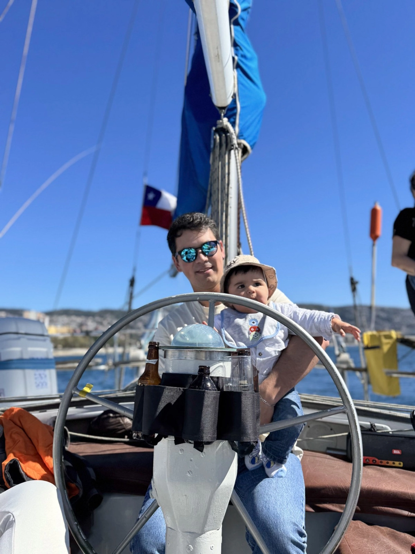 Los participantes se reúnen en el Muelle Prat, donde el equipo los recibe y los asiste en el embarque a un bote auxiliar con capacidad para hasta 5 personas. Una breve inducción de seguridad marca el inicio del recorrido.