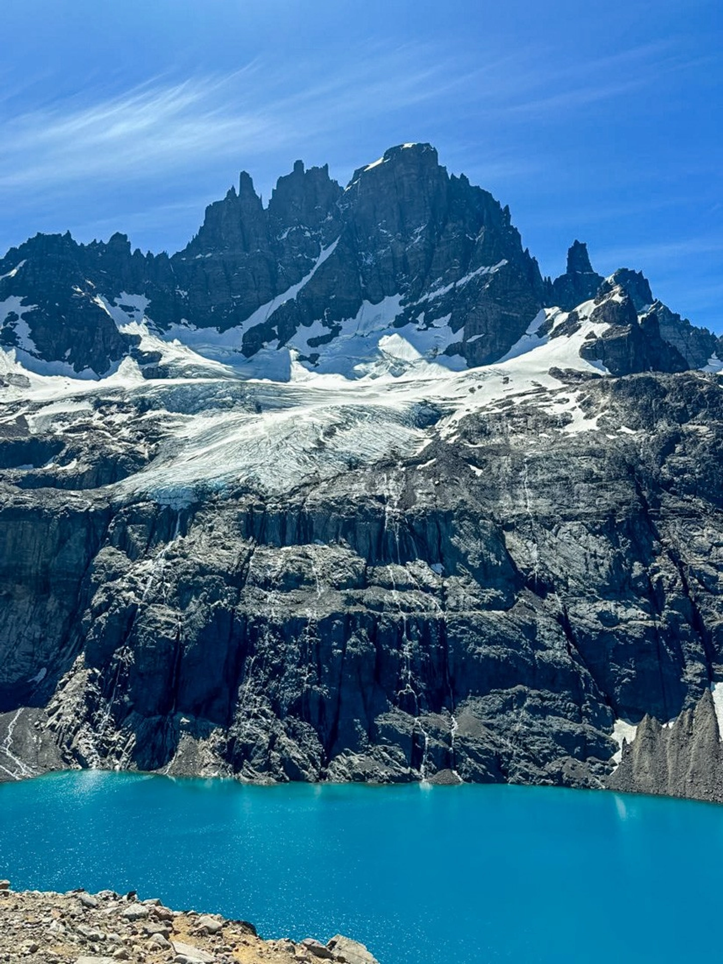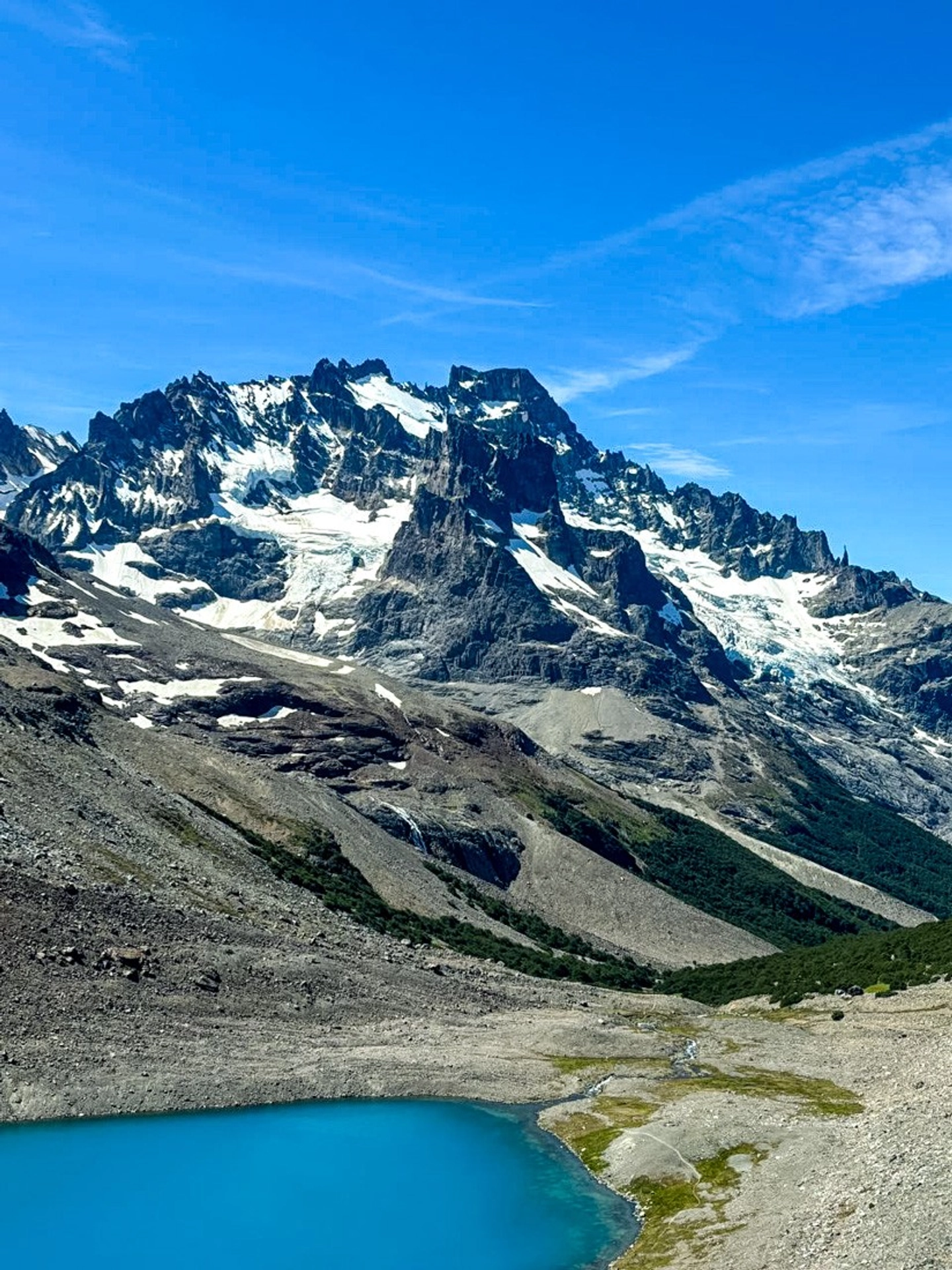 2 HorasLlegaremos al portezuelo, un punto clave donde destaca la cara sur del Cerro Castillo y sus glaciares. Aquí, podrás disfrutar de impresionantes vistas mientras recorres el pedregal que lleva al mirador de la laguna glaciar.