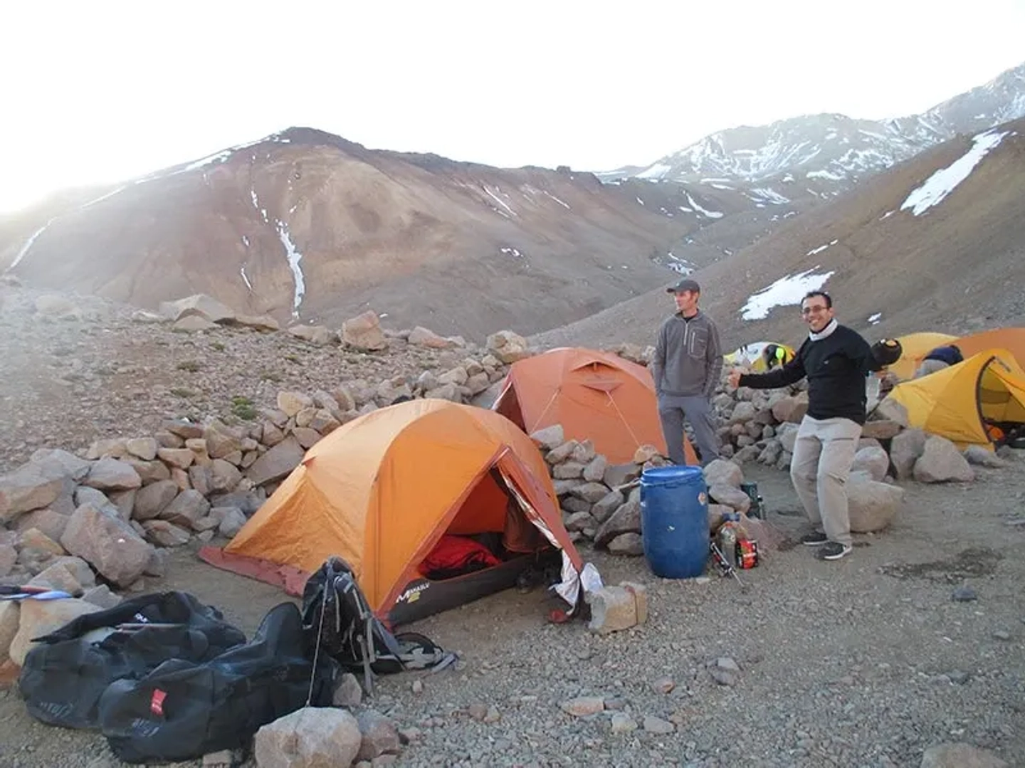 En la mañana nos trasladamos en los vehículos particulares hasta “Los Tachos”, donde se encuentra el Campamento Base, ubicado a 2500 ms de altura. Iniciamos el ascenso hasta el Campamento 1, ubicado a 3000msnm – conocido como “vivac Huechulafquen”- caminando por un hermoso y árido valle. Tiempo de marcha estimado: 3 a 4 hs. Alojamiento en carpa. Usaremos mulas para llevar equipos hasta la zona del campamento.