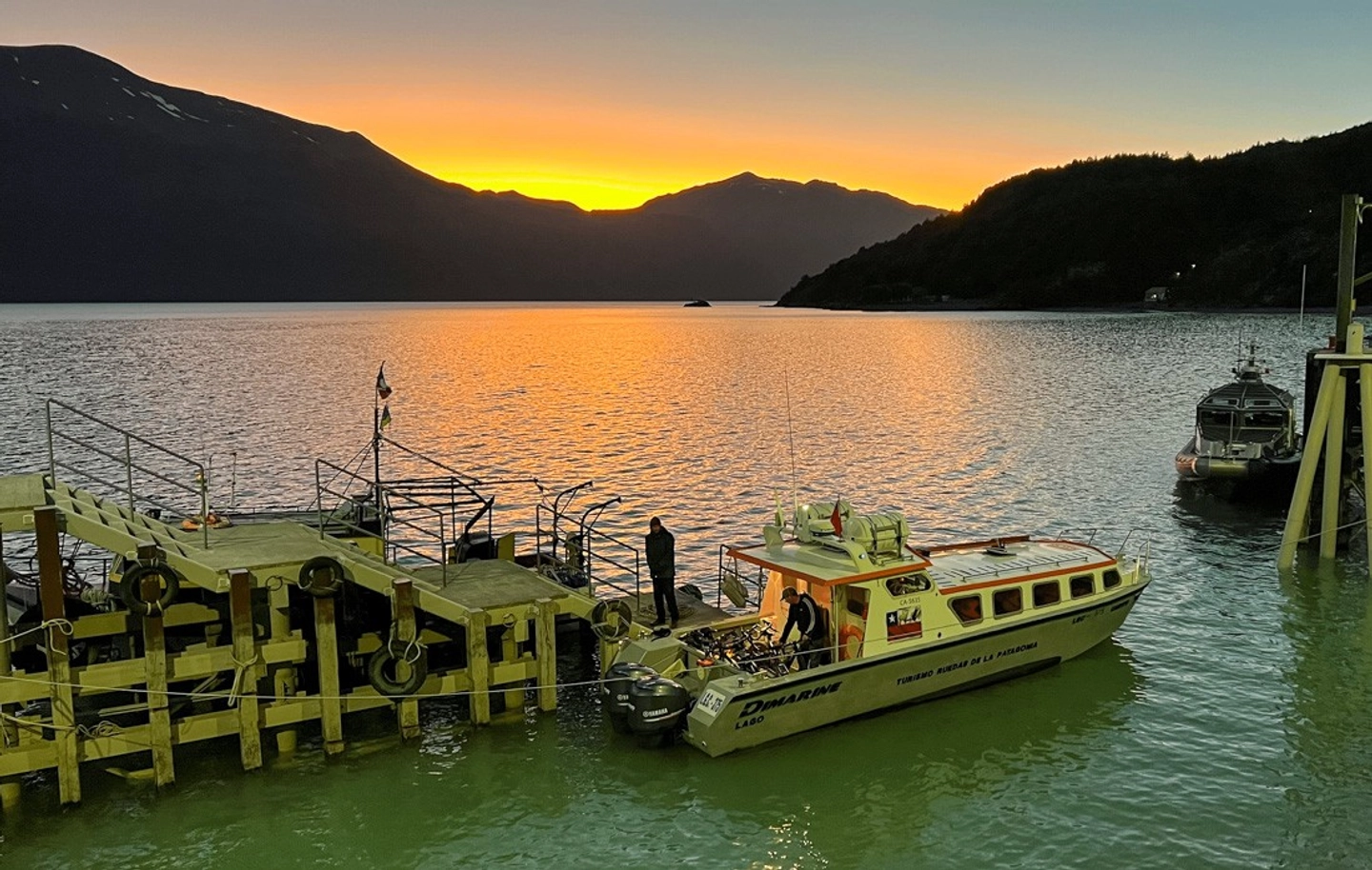 Navegamos por el majestuoso Lago O’Higgins, partiendo a las 17:00 desde Candelario Mancilla hacia Puerto Bahamondes.