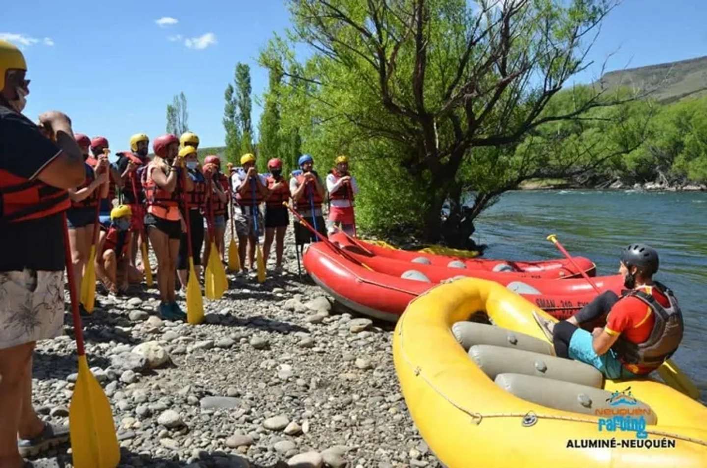 El día comienza con la reunión en el punto de partida a orillas del Río Aluminé. Aquí, guías experimentados ofrecerán una charla técnica y de seguridad, explicando las maniobras básicas de remo y cómo actuar en el agua. Después de equiparnos con chalecos salvavidas y cascos, embarcaremos en las balsas para comenzar la aventura. Los primeros tramos del río son ideales para practicar y aclimatarse, disfrutando de un entorno natural espectacular y preparándonos para la acción que está por venir.