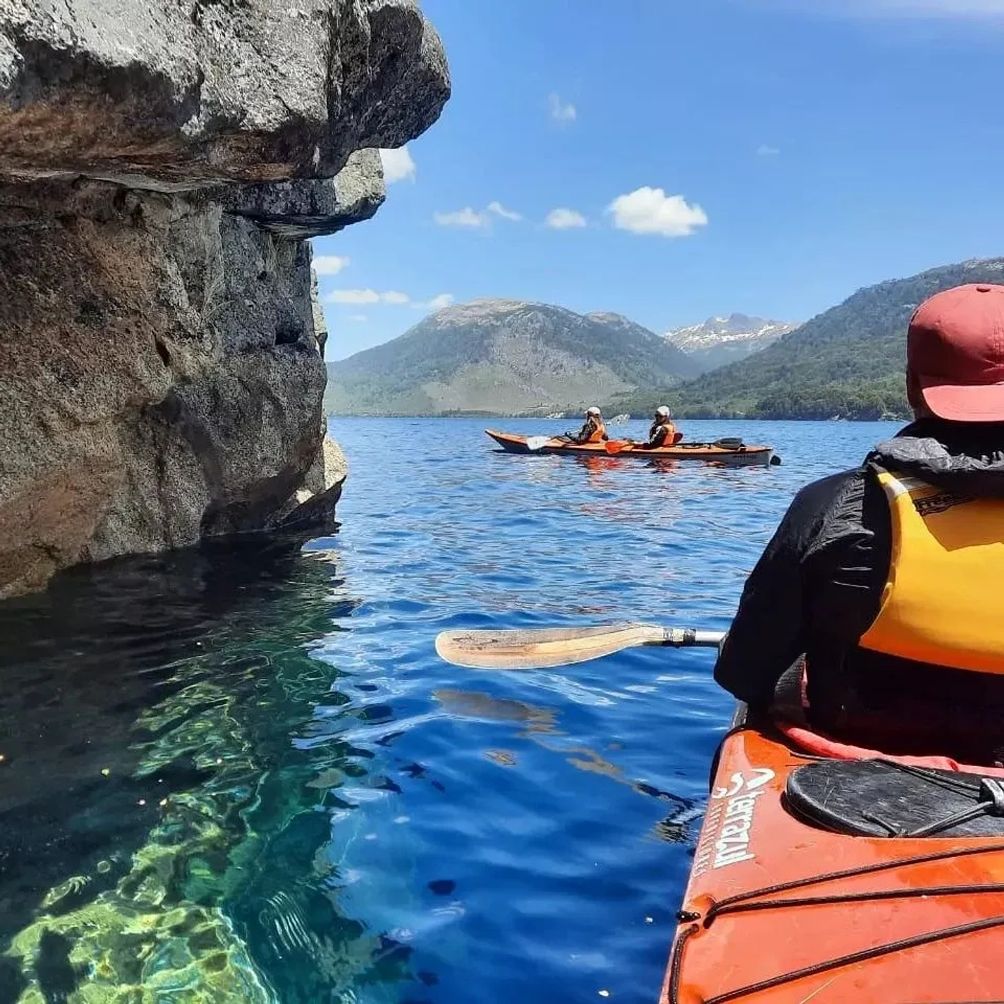 La aventura comienza equipándote con tu kayak para remar sobre las aguas cristalinas del Lago Aluminé. Durante esta primera etapa, te sumergirás en la inmensidad del paisaje, rodeado por las majestuosas montañas que enmarcan el lago. Es el momento ideal para conectar con la naturaleza, sentir la serenidad del entorno y disfrutar de vistas panorámicas espectaculares mientras avanzas a tu propio ritmo.