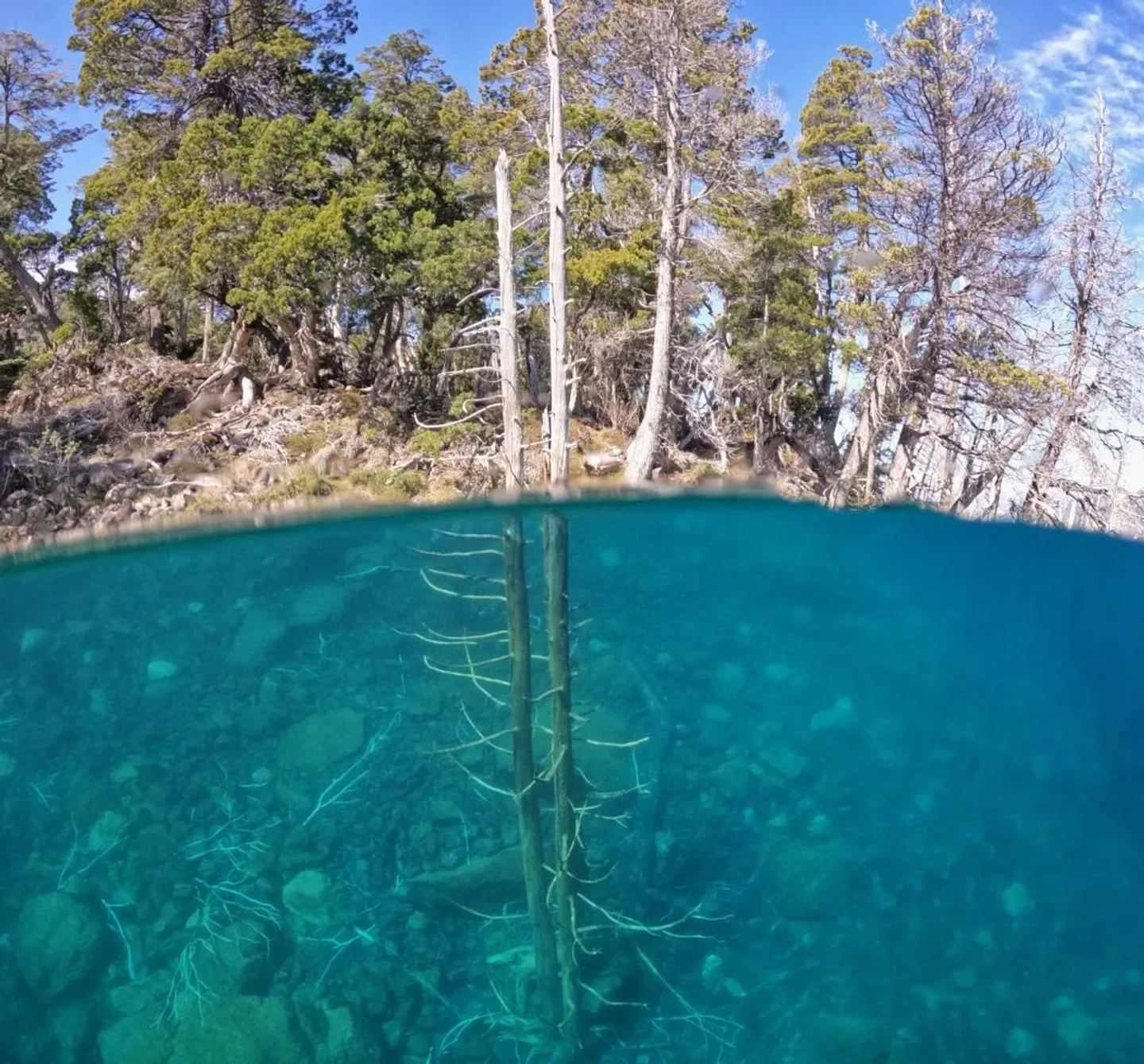 El punto culminante del viaje es la llegada a la increíble Selva Sumergida. Aquí, serás testigo de un fenómeno natural único, donde decenas de cipreses se elevan intactos desde el fondo del lago. Gracias a la transparencia del agua, podrás observar claramente las copas de los árboles, un paisaje de otro mundo que combina misterio y belleza en una experiencia inolvidable.
