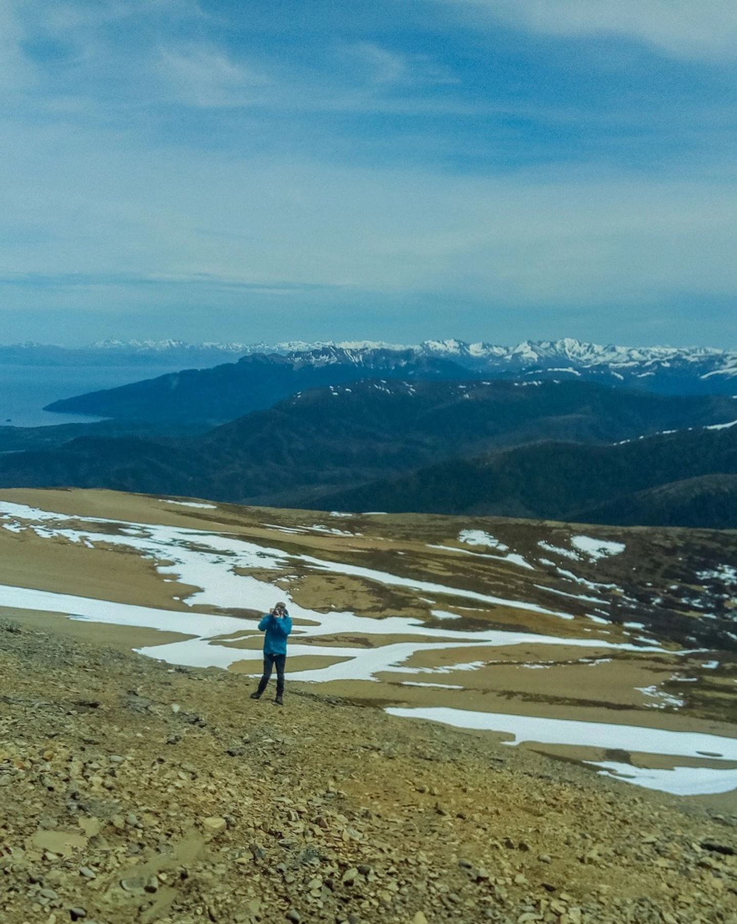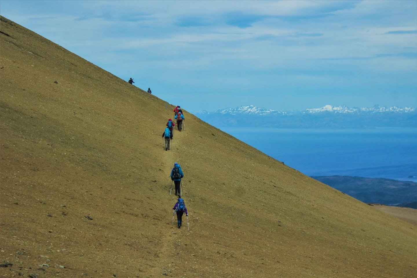 45 MinutosInicie a caminhada de 14 km com uma subida constante pela floresta patagônica. A trilha oferece paradas interpretativas onde o guia compartilhará informações sobre a história, flora e fauna da região. Ao alcançar o cume, desfrute de vistas panorâmicas incomparáveis da Ilha Dawson, da Cordilheira Darwin e dos vales inexplorados da Península Brunswick.
