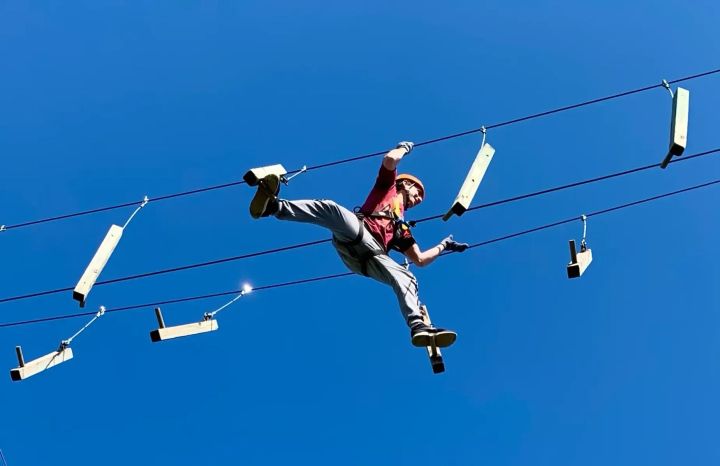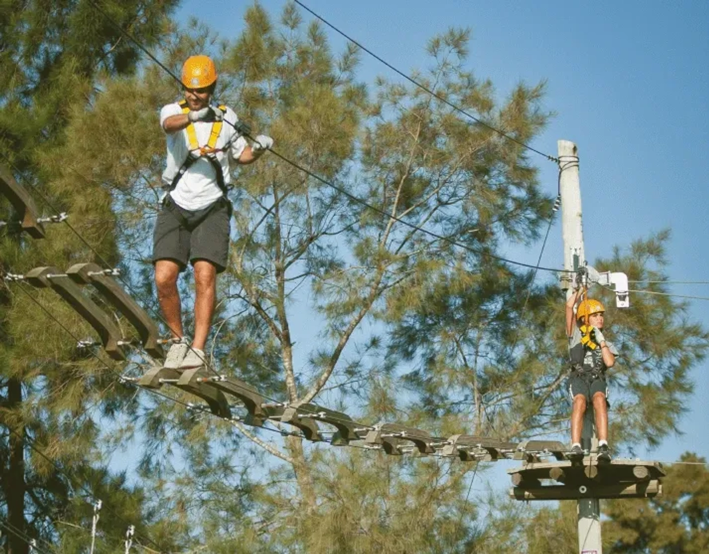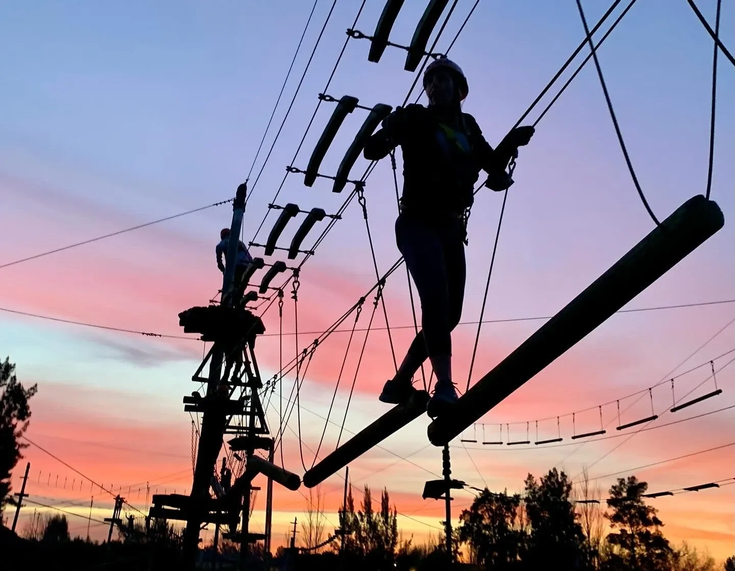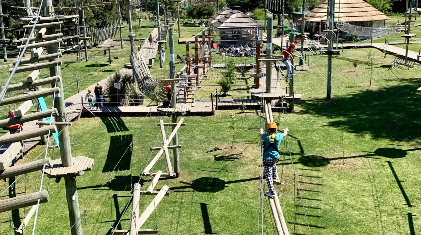 Con la confianza ganada, el grupo avanzará hacia los juegos más emocionantes y desafiantes de los 105 disponibles. Pondrán a prueba su equilibrio y valentía en las plataformas más altas para culminar la aventura con la máxima adrenalina: un espectacular recorrido por una selección de las 20 tirolesas del parque, volando entre los árboles y disfrutando de una sensación de libertad y diversión inolvidable.